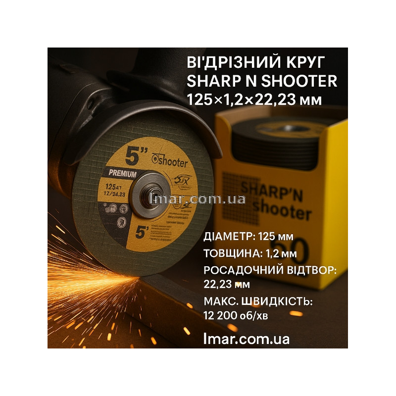 Отрезной круг Sharp N Shooter 125×1.2×22.23 мм (5") — тонкий, прочный круг для резки металла. Подходит для УШМ. Максимальная скорость — 12 200 об/мин. В УП 50 ШТ