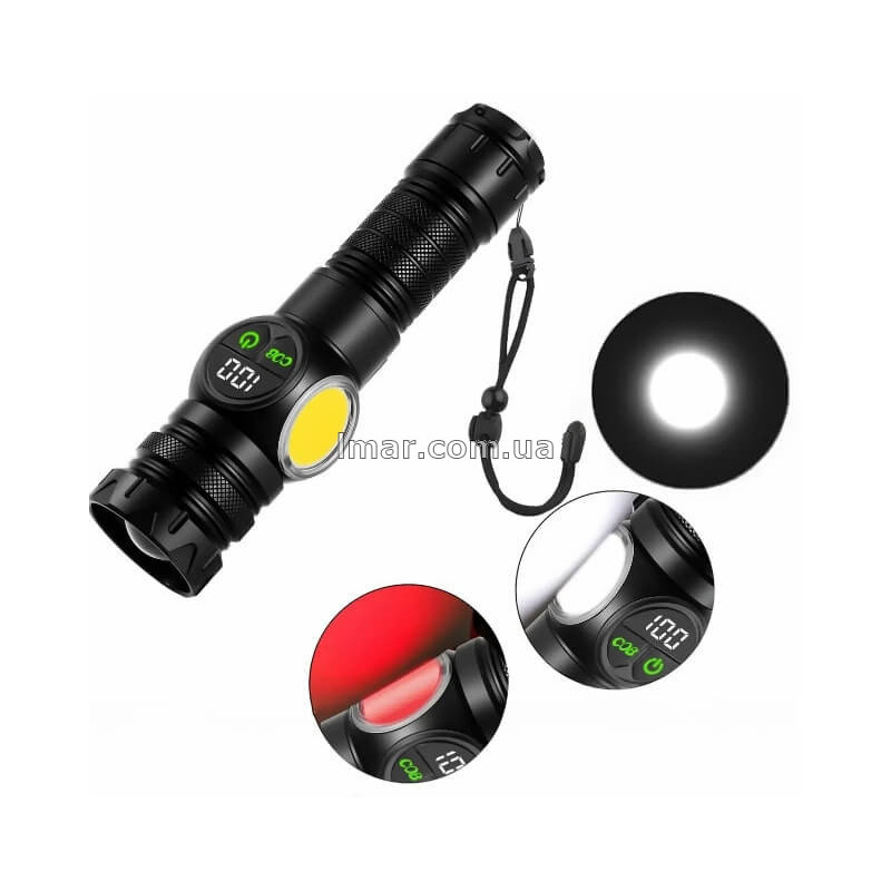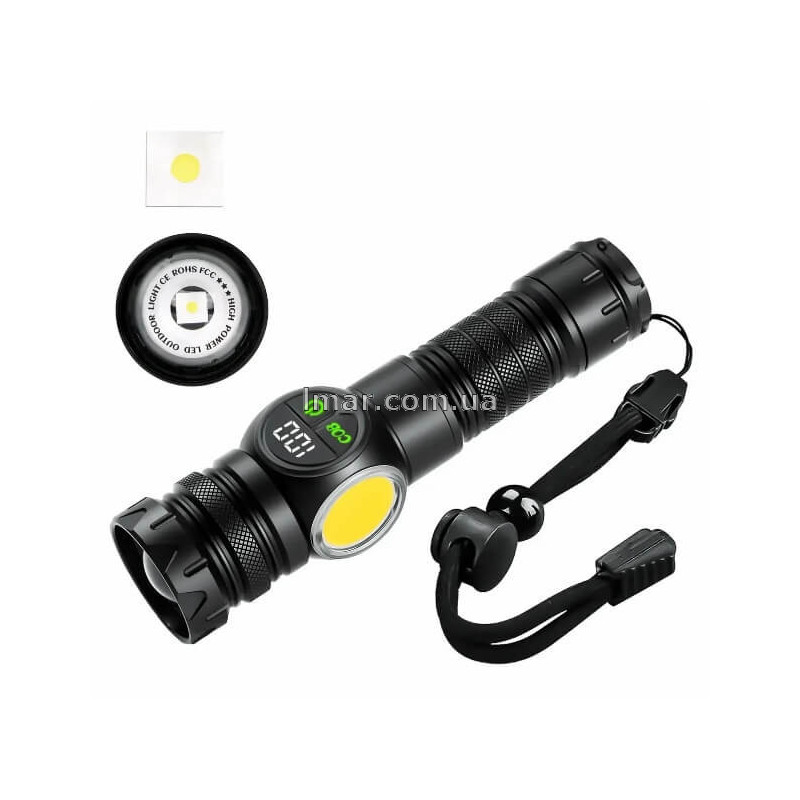 Фонарь ручной аккумуляторный A280, LED+COB, с магнитом, Power Bank, дисплей, 4 режима