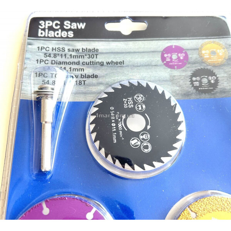 Набор мини-пильных дисков (отрезных) 3 шт + оправка Ø54,8 мм (для гравера, мини-дрели)