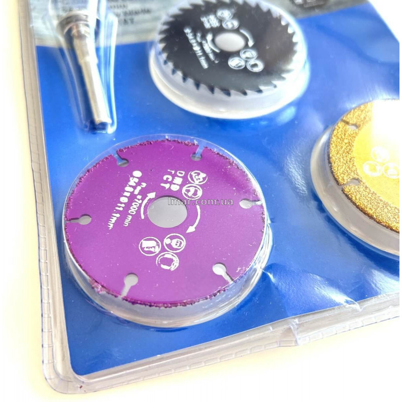Набор мини-пильных дисков 3 шт с оправкой Ø54,8 мм — для граверов, мини-дрелей и других инструментов. Предназначен для точной резки металла, пластика и дерева. Компактный, универсальный и удобный в работе инструмент.