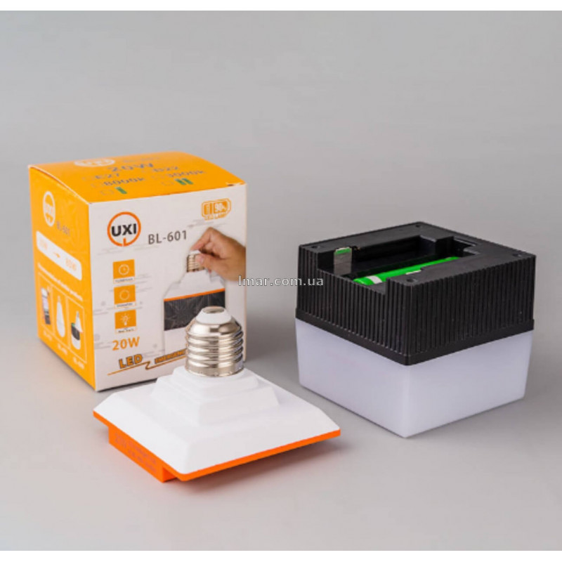 В комплект входит: 1 × лампа UXI BL-601 20Вт Е27, встроенный аккумулятор, инструкция и фирменная коробка.