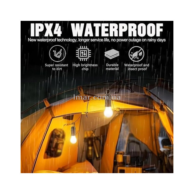 Подвесная кемпинговая лампа с солнечной панелью и USB Type-C обеспечивает яркий тёплый свет в походах, дома и в саду. Заряжается от солнца или через кабель, имеет индикатор уровня заряда, удобный карабин и влагозащиту IP65.В ящике 120 штук