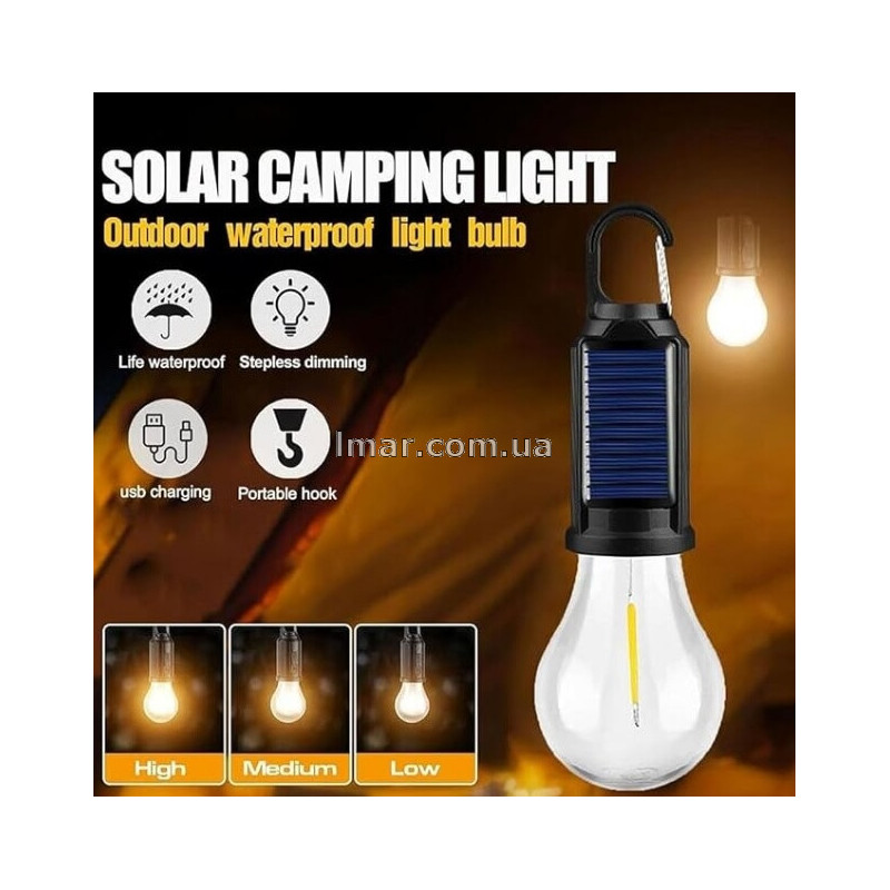 Кемпинговая лампа с солнечной панелью и USB Type-C (подвесная, тёплый свет)