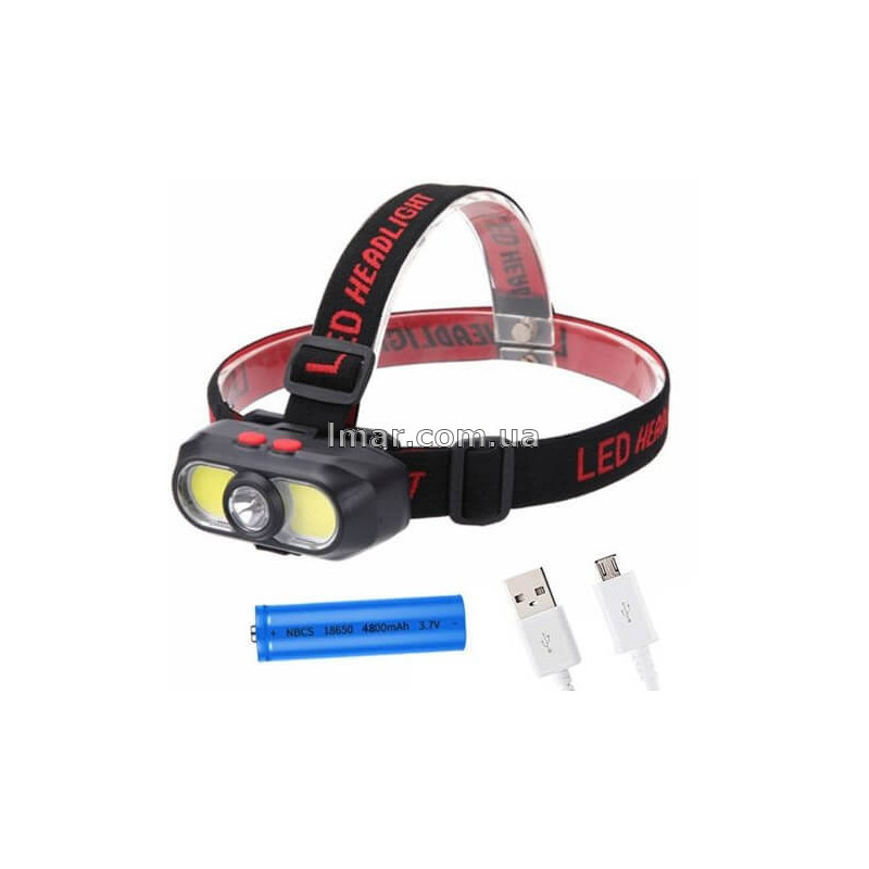 Фонарь налобный аккумуляторный KX-302 XPE+COB, Type-C, под аккумулятор 18650