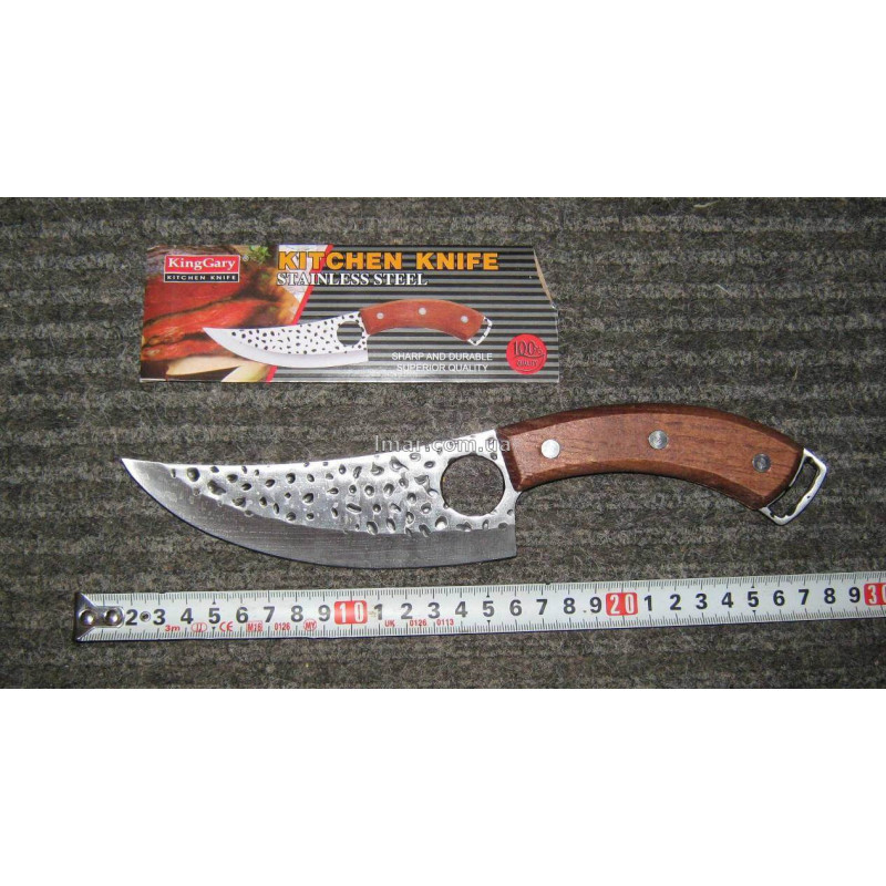 Кухонный нож KingGary 27 см — острый и надёжный универсальный инструмент для дома и профессиональной кухни. Лезвие из нержавеющей стали, удобная деревянная ручка, сбалансированный вес. Идеален для мяса, рыбы, овощей и фруктов.