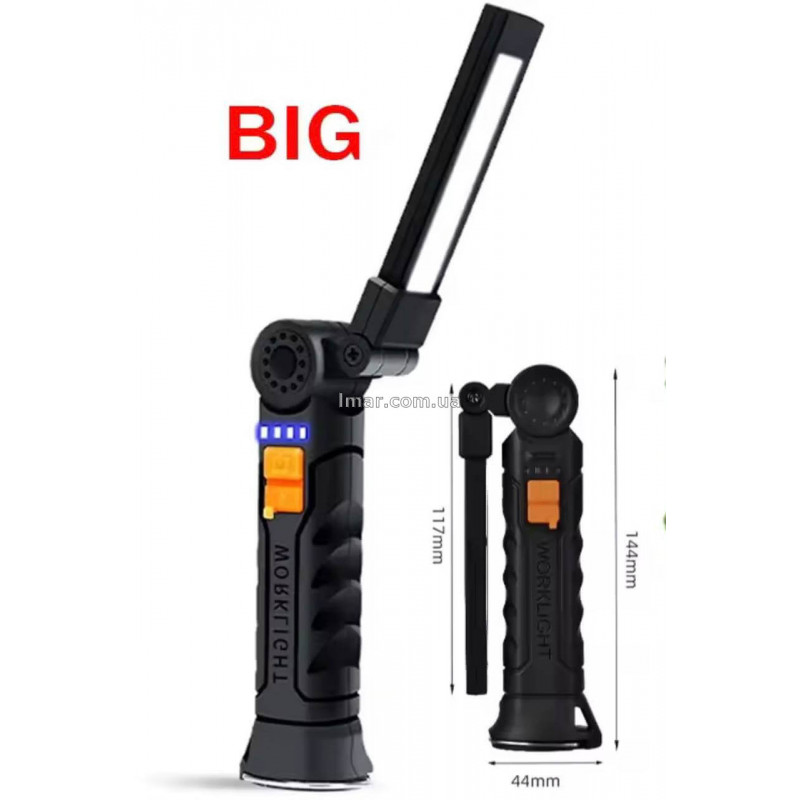 Фонарь рабочий аккумуляторный W52 большой, складной 360° на магните, черный