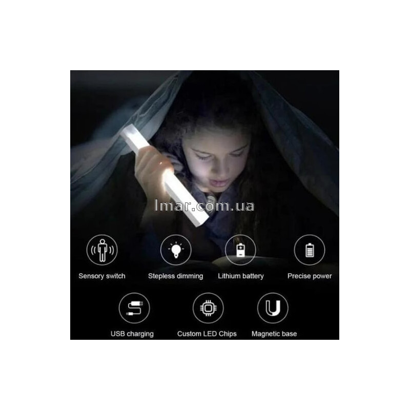 Светильник выполнен в компактном и практичном корпусе из качественного пластика. Магнитное крепление позволяет быстро установить его без сверления и без сложного монтажа. Благодаря длине 30 см он обеспечивает хорошую зону освещения и подходит для большинства бытовых задач. USB зарядка делает использование максимально удобным: светильник можно заряжать от адаптера, ноутбука, павербанка или USB-порта.