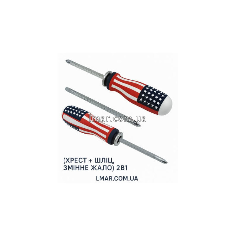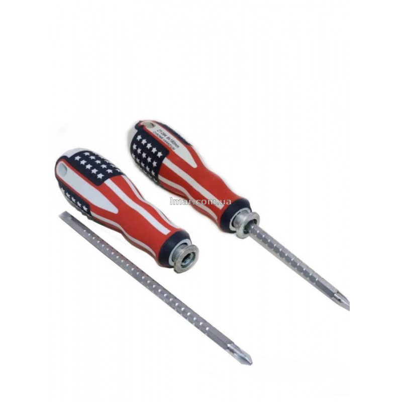 Отвёртка “Америка” двухсторонняя с фиксатором (крест + шлиц, сменное жало) 2в1
