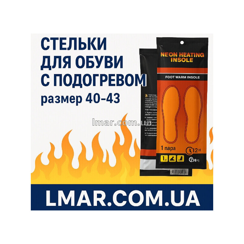 Стельки с подогревом для обуви (размер 40–43). Электрические термостельки обеспечивают комфорт и тепло до 12 часов. Отличный выбор для зимы, рыбалки, охоты и активного отдыха.
