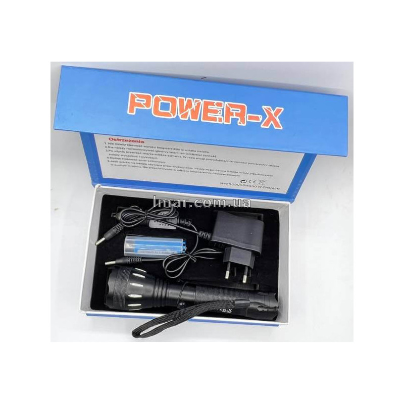 Аккумуляторный фонарь Bailong Power-X AC-4011 с мощным LED-светом, функцией Zoom и питанием от аккумулятора 18650. Идёт в комплекте с зарядкой, адаптером и шнуром. Подходит для дома, автомобиля, охоты, рыбалки и походов.