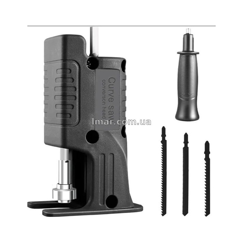 Насадка-лобзик для дрели (адаптер сабельной пилы) с быстросъёмным механизмом и комплектом из 3 пильных полотен. Превращает обычную дрель в многофункциональный инструмент для резки древесины, пластика и мягких материалов.