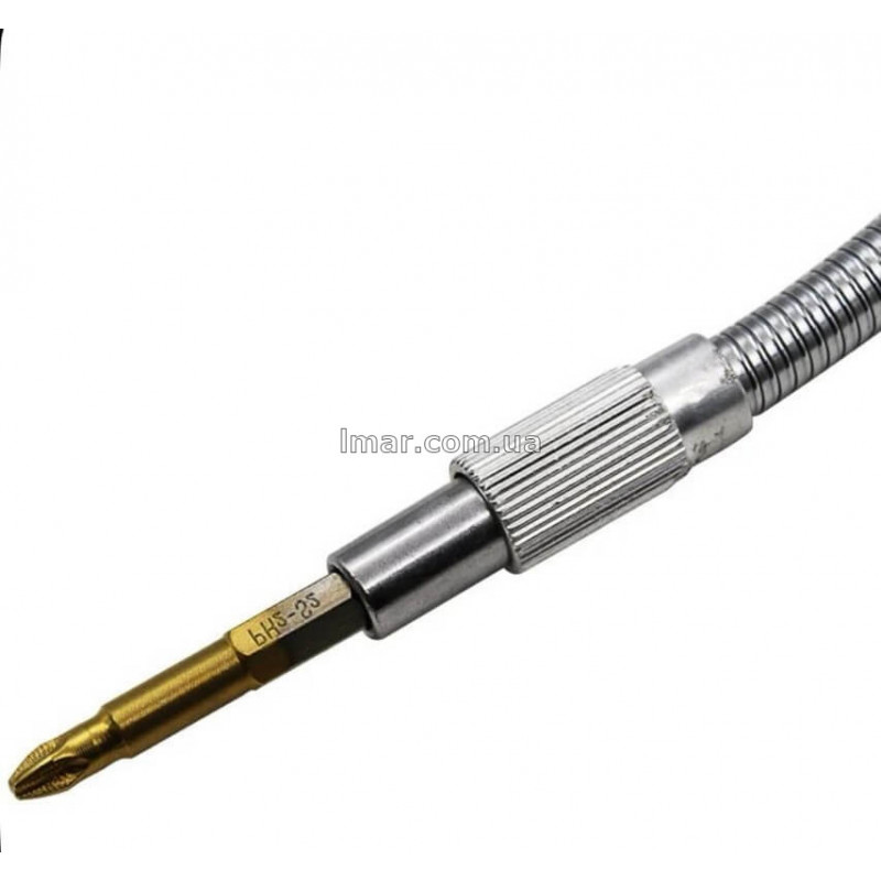 Гибкий удлинитель для бит 1/4 (200 мм). Усиленный вал для шуруповерта и дрели. Обеспечивает удобный доступ к крепежу в труднодоступных местах. Прочный и долговечный.