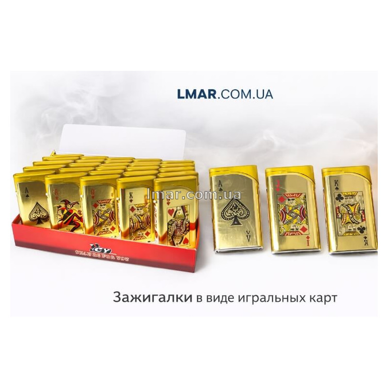 Главное преимущество этой модели — привлекательный внешний вид, оригинальный дизайн и универсальный спрос. Золотистое оформление и изображения игральных карт делают зажигалку заметной на витрине и привлекательной для импульсной покупки. Такой товар хорошо подходит для перепродажи и быстро привлекает внимание покупателей.