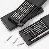 Універсальний набір міні-викруток 25 в 1 — ідеальний інструмент для ремонту телефонів, ноутбуків, годинників і електроніки. 24 змінні біти, міцна ручка з магнітом та зручний шкіряний чохол для зберігання й транспортування.