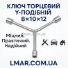 Ключ торцевий Y-подібний 8×10×12 – універсальний інструмент для роботи з кріпленнями. Завдяки формі «трикутник» забезпечує зручний хват та оптимальний важіль при закручуванні чи відкручуванні гайок і болтів.