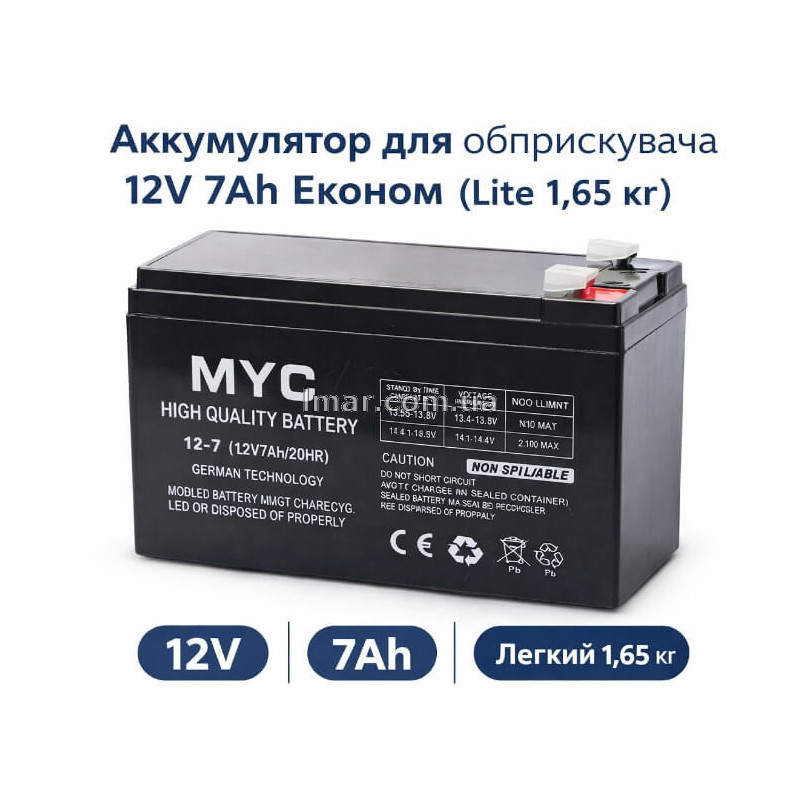 Акумулятор для обприскувача 12V 7Ah Економ (Lite 1.65 кг)