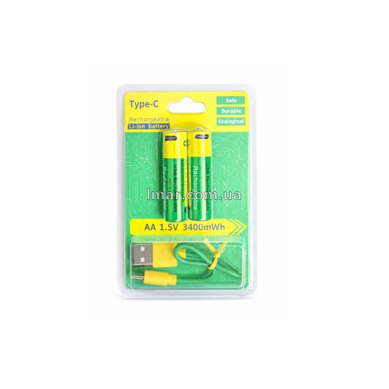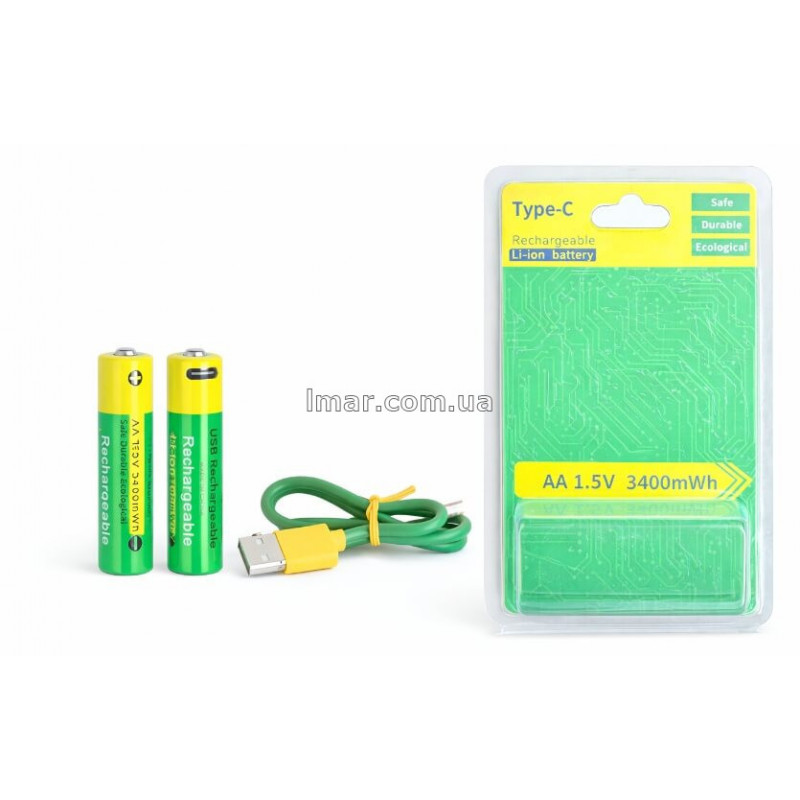 Акумуляторні пальчикові батареї AA 1.5V Li-ion із USB Type-C зарядкою, 3400mWh, 2 шт.