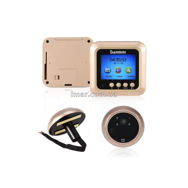 Відеовічко Danmini з екраном 2.4" і HD-камерою — сучасне рішення для безпеки. Оснащене нічним баченням і трьома режимами роботи. Просте встановлення, чітке зображення, стильний дизайн і надійність від LMAR