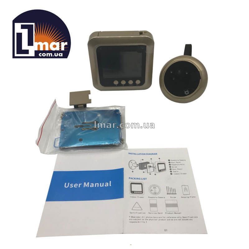 Постачається у фірмовій коробці із захистом від пошкоджень. У комплект входить відеовічко, інструкція та всі необхідні кріпильні елементи.