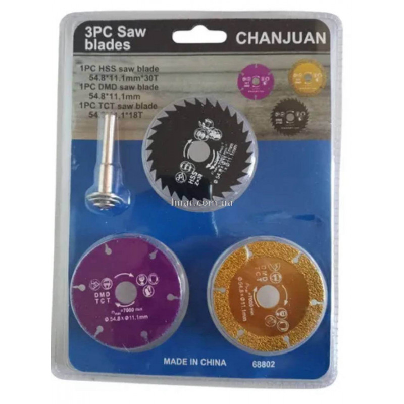 Набір міні-пильних дисків (відрізних) 3 шт + оправлення Ø54,8 мм (для гравера, міні-дрилі)
