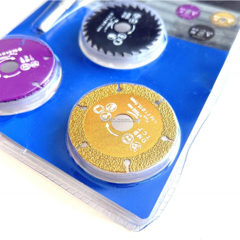 Основна перевага — точність, компактність і універсальність. Диски дозволяють виконувати тонке різання в важкодоступних місцях. Оправка забезпечує швидку заміну дисків і надійну фіксацію під час роботи.
