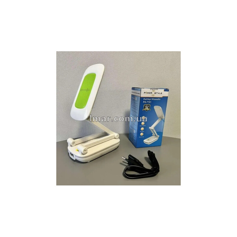Настільна лампа Power Style PS-7701 — сучасна складна LED-лампа з вбудованим акумулятором, сенсорним перемикачем та можливістю заряджання через USB. Ідеальний варіант для робочого місця, навчання, читання, манікюру, рукоділля та освітлення під час відключень електроенергії.