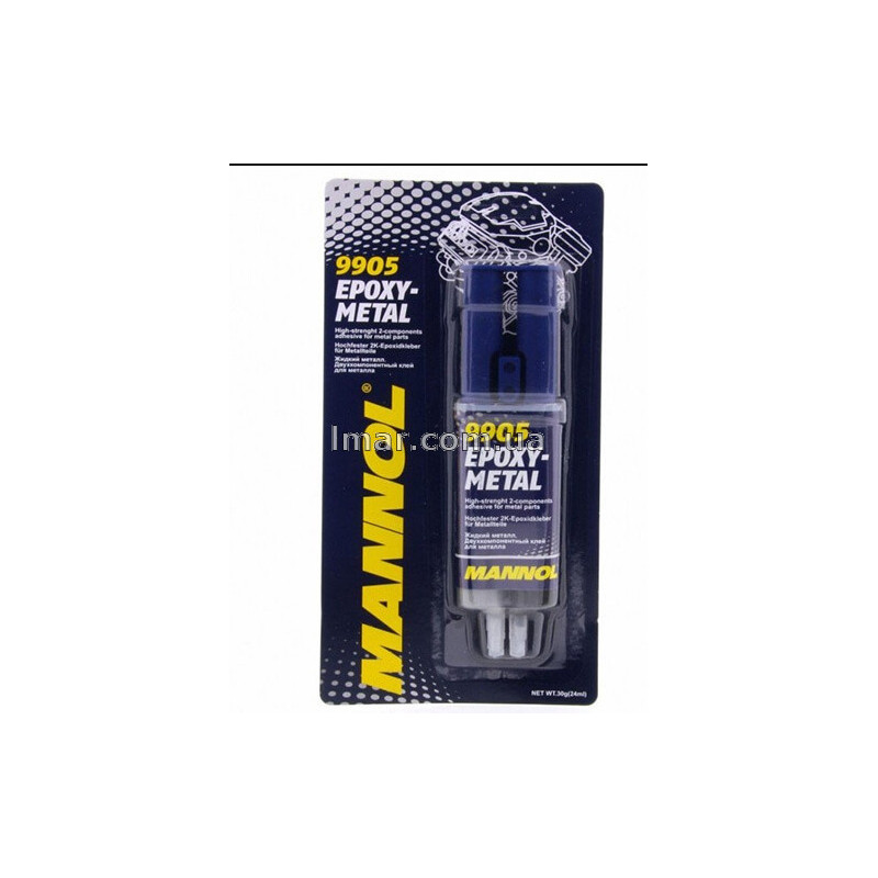 Двокомпонентний клей MANNOL 9905 Epoxy-Metal 30 г — міцний епоксидний склад для ремонту та склеювання металевих деталей. Витримує температуру до +150 °C, швидко застигає. Ідеальний для дому, гаража та майстерні.