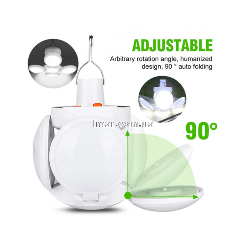 Сонячна лампа JD 2029 (акумуляторна складна лампа із сонячною панеллю, USB зарядкою та гачком)