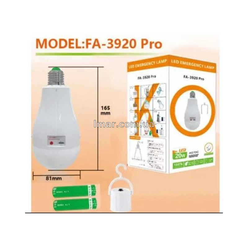 LED лампочка з акумулятором FA-3920 Pro (20W, E27, аварійна, перезаряджається)