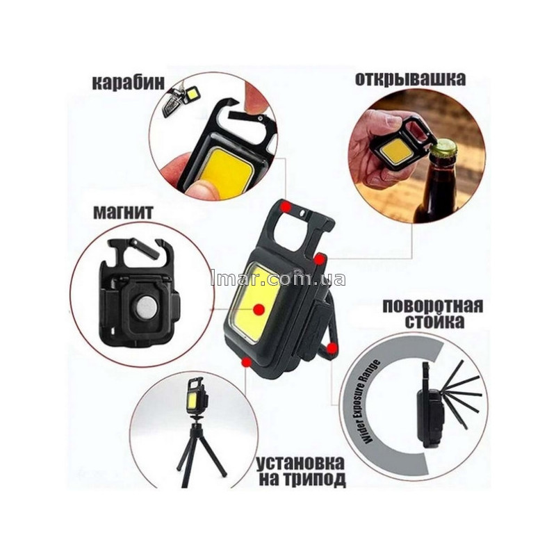 Акумуляторний COB ліхтар-брелок 5W 3в1 з USB, магнітом і карабіном — компактний яскравий міні-прожектор для авто, туризму та дому. Заряджається через USB, кріпиться на метал та зручно фіксується на ключах.
