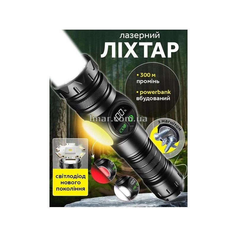 Ліхтар ручний акумуляторний A280, LED+COB, з магнітом, Power Bank, дисплей, 4 режими