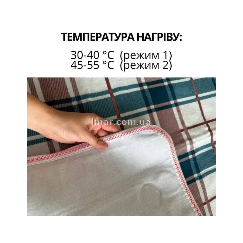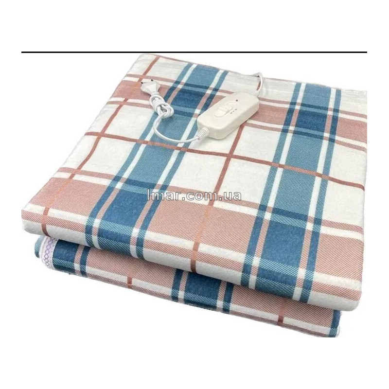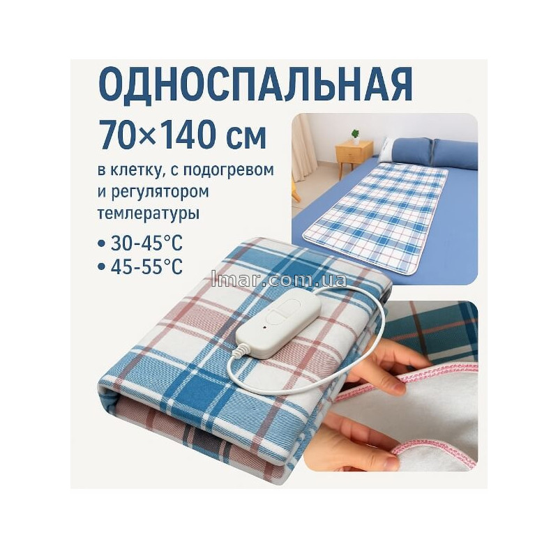 Електропростирадло односпальне 70×140 см у клітку, з підігрівом та регулятором температури (шнур 1,9 м)