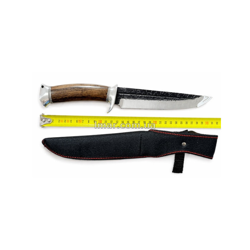 Фіксована конструкція клинка забезпечує жорсткість і надійність завдяки відсутності складних механізмів. Такий формат зручний для зберігання, обслуговування та розміщення у складі спорядження. За фото виріб має виражену захисну гарду, декоративну обробку поверхні клинка та руків’я з текстурою під дерево, що надає моделі характерного зовнішнього вигляду.