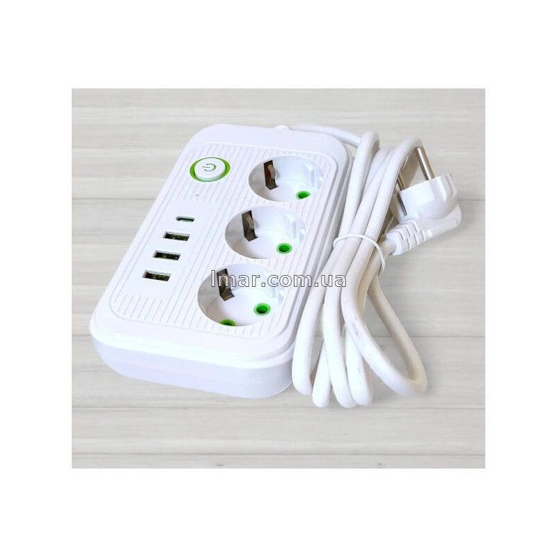 Мережевий фільтр з вимикачем Power Socket F015 на 3 розетки, 3 USB, 1 Type-C, 2500W, довжина 5м