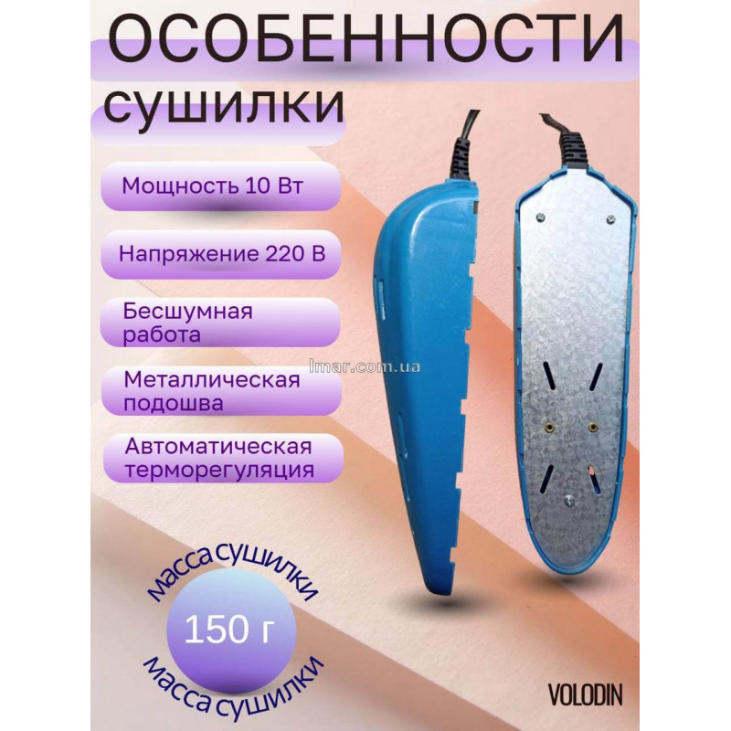 Корпус виготовлений із вогнетривкого пластику, який витримує високі температури та забезпечує довговічність. Внутрішній нагрівальний елемент рівномірно розподіляє тепло, не пересушуючи матеріал взуття. Кабель достатньої довжини дає змогу розмістити сушарку зручно у будь-якому місці.