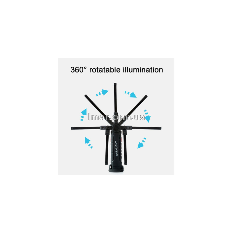 Ліхтар робочий акумуляторний W52 mini, складаний 360° на магніті, чорний