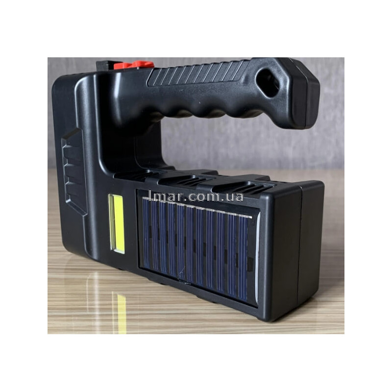 Ручний акумуляторний LED ліхтар із сонячною панеллю — це зручний і практичний багатофункціональний світильник для дому, дачі, автомобіля, гаража, майстерні, риболовлі, туризму та аварійних ситуацій. Модель поєднує в собі яскраве фронтальне світло 8 LED, бокове COB-світло, вбудований акумулятор, зарядку від USB та можливість підзарядки від сонячної панелі. Такий акумуляторний ліхтар із сонячною батареєю стане чудовим рішенням для використання під час відключення електроенергії, у дорозі, на природі та в господарстві.