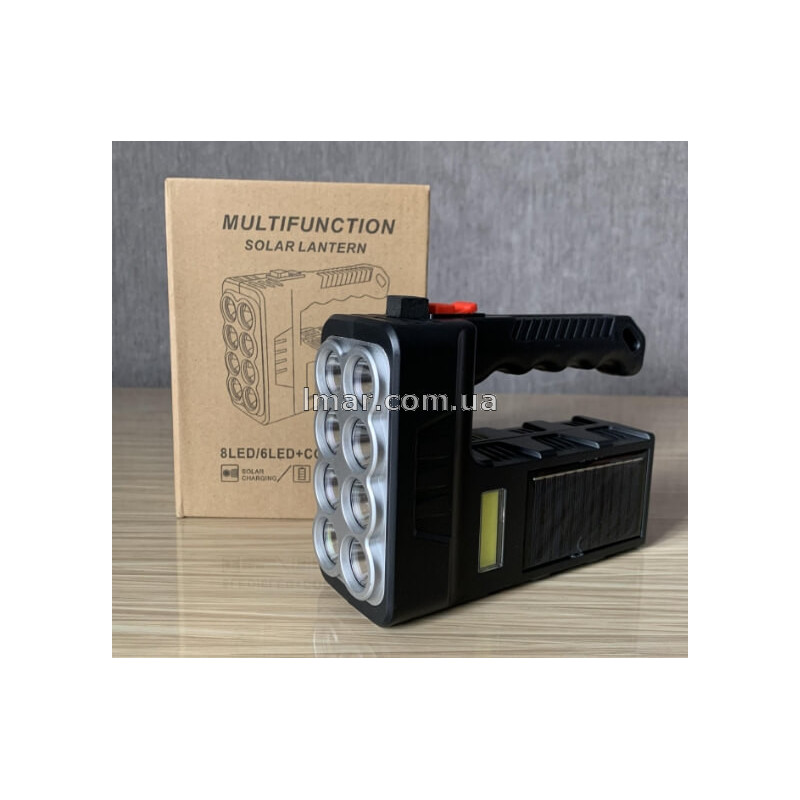 Ручний акумуляторний LED ліхтар із сонячною панеллю, 8 LED + COB бічне світло, USB зарядка, аварійний