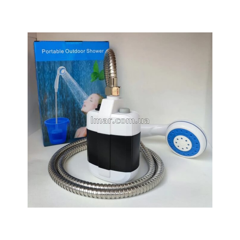 Корпус пристрою виготовлений із якісного та міцного пластику, який стійкий до вологи та механічних пошкоджень. Погружний насос опускається у ємність з водою та подає воду через гнучкий шланг до душової лійки.