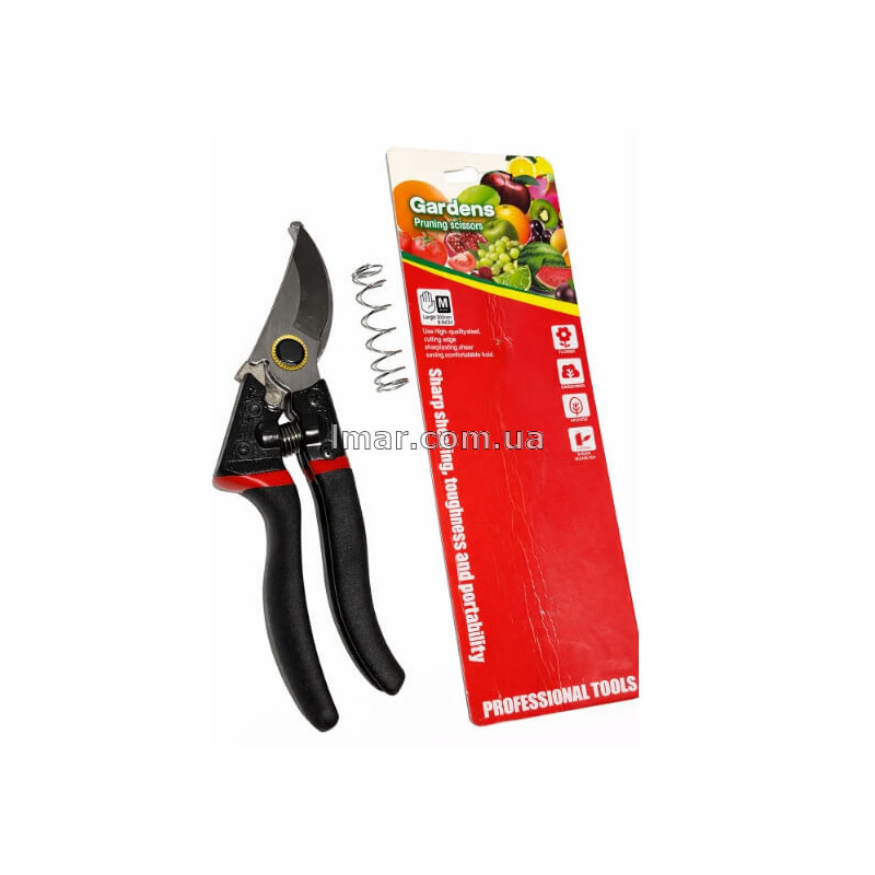 Секатор садовий 200 мм (8"), для обрізки гілок до 20 мм, з пружиною та фіксатором
