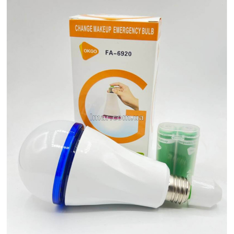 У комплекті: 1 × лампочка 20Вт з цоколем Е27, 2 × акумулятори, інструкція, фірмова коробка.