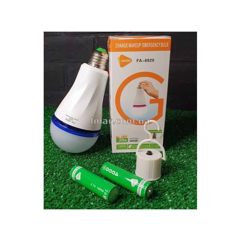 Акумуляторна лампочка 20 Вт у патрон Е27 + 2 акумулятори (6920) — сучасне рішення для стабільного освітлення вдома, на дачі, в офісі та підсобних приміщеннях. Завдяки LED-технології та вбудованому акумулятору з додатковими батареями лампа продовжує працювати навіть під час відключення електроенергії.