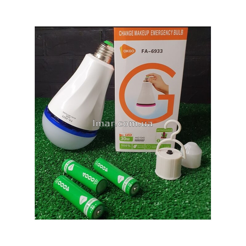 Акумуляторна лампочка 30Вт Е27 (6933) з трьома акумуляторами. Яскраве світлодіодне світло, до 8 год автономної роботи. Для дому, офісу, дачі та аварійного освітлення.