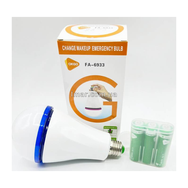 У комплекті: 1 × акумуляторна лампочка 30Вт Е27, 3 × акумулятори, інструкція, фірмова коробка.