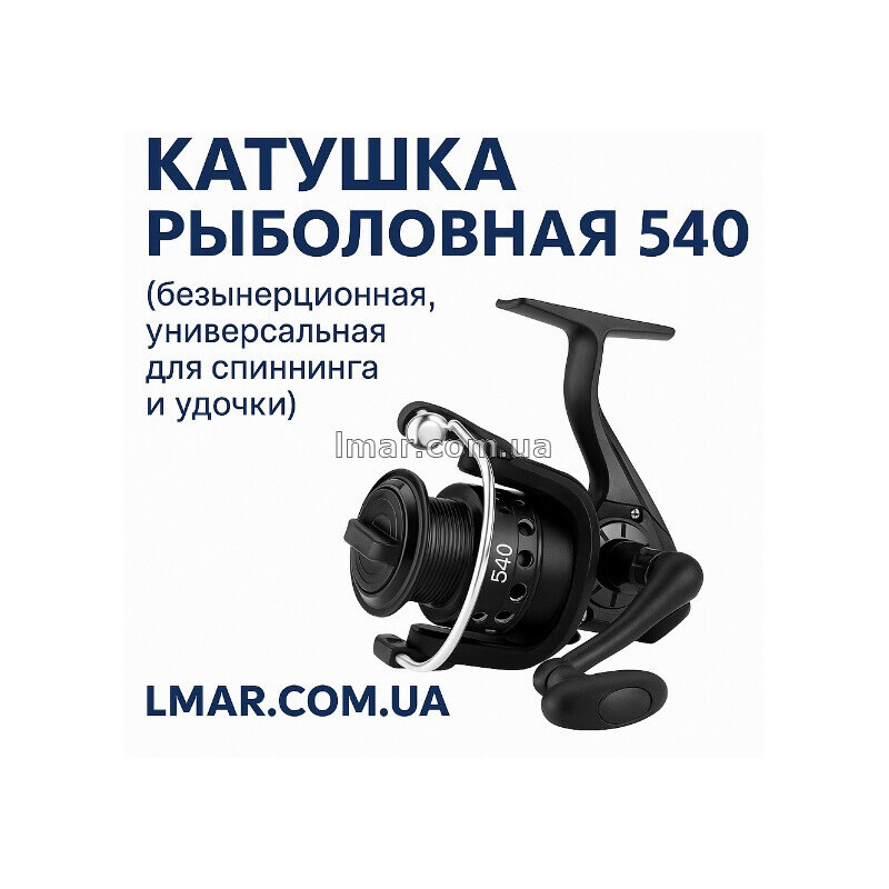 Риболовна котушка 540 — універсальна безінерційна модель для спінінга та вудки. Металева шпуля, міцний корпус і плавний хід забезпечують комфорт на риболовлі.