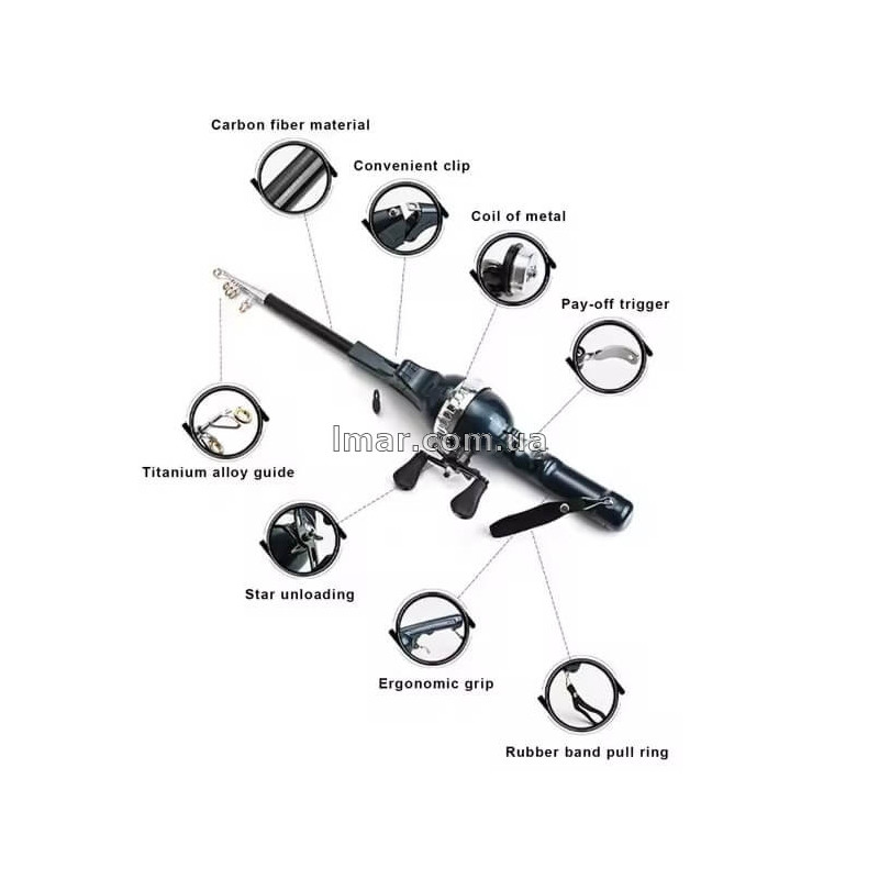 У комплект входить: телескопічна вудка 134 см, безінерційна котушка, упаковка.