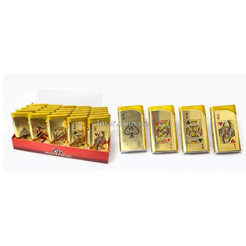 Головна перевага цієї моделі — привабливий зовнішній вигляд, оригінальний дизайн і стабільний попит. Золоте оформлення та зображення гральних карт роблять запальничку помітною на вітрині й привабливою для імпульсної покупки. Такий товар добре підходить для перепродажу та швидко привертає увагу покупців.