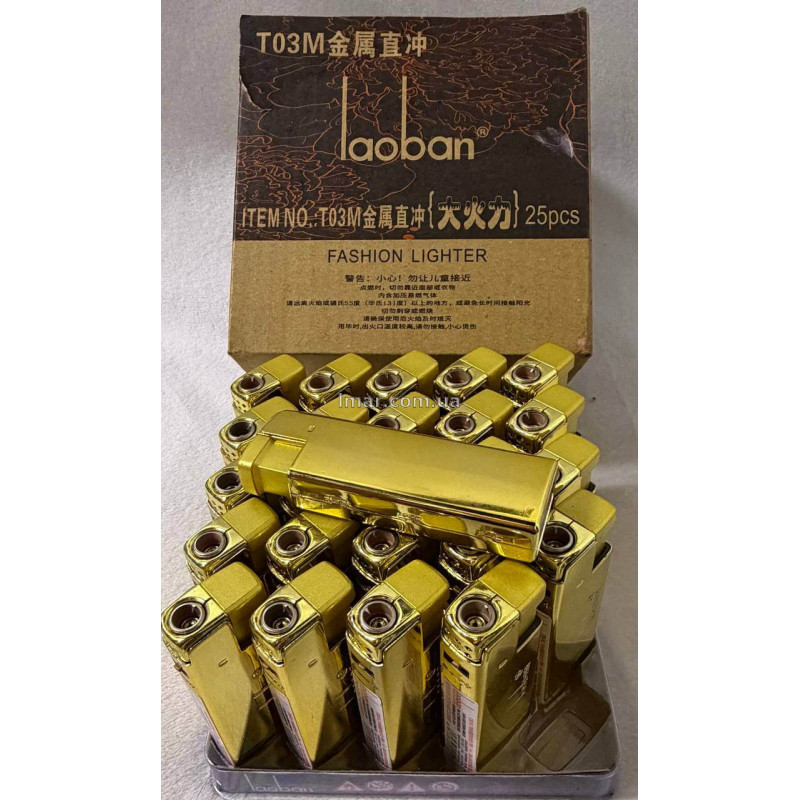 Запальничка металева турбо LAOBAN T03M, золотий корпус, багаторазова, 25 шт/уп